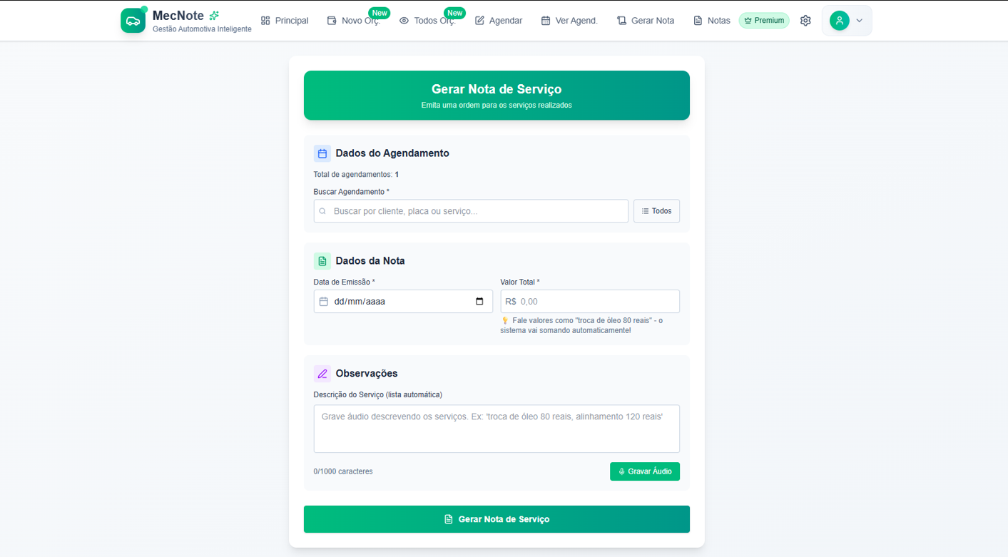 Emita notas detalhadas com descrição de serviços e peças em segundos